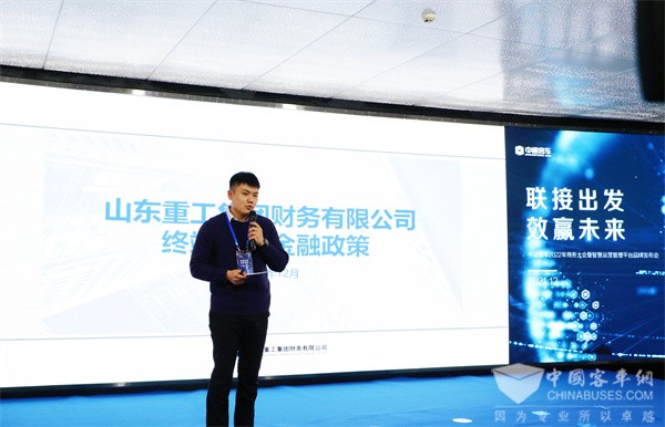 为了让更多客户享受到优秀的产品和服务,山东重工集团财务有限公司郭文弘在会上详细解读了中通客车2022年金融政策,帮助客户解决购车金融之忧。