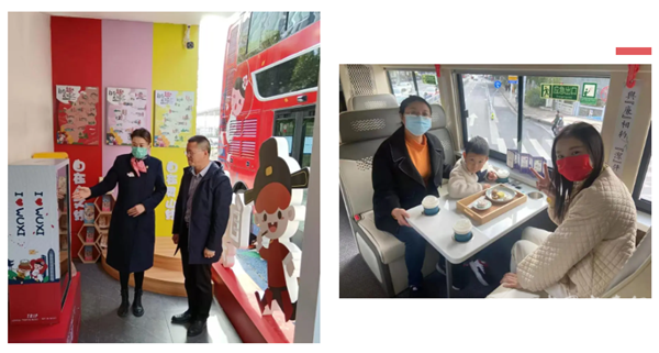除了乘车一览沿途风光,乐游3号线每辆车上还配备了VR眼镜,游客可以通过VR设备鸟瞰无锡美景。光有美景却没有美食的旅行是不完整的,游客可以通过网上商城提前预约,选择自己中意的茶点。待到等车时,美食已经提前在车上等待游客的享用了。