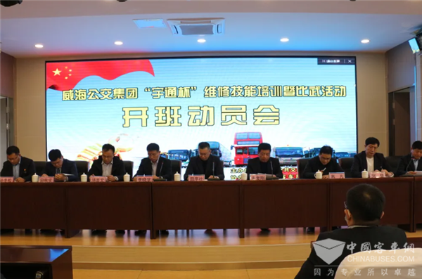 2021年11月末,威海公交集团修理分公司与宇通集团联合举办威海公交集团“宇通杯”新能源维修技能培训暨比武活动。在2021年11月26日的开班动员会上,特别邀请市公共就业和人才服务中心副书记朱复刚和市总工会生产部部长高凡出席。宇通公司华北地区总经理李晓学、山东大区经理汤吉文、售后大区经理田秋实,集团党委副书记总经理田序壮、党委委员副总经理刘坚,以及技术机务部、修理分公司等相关部室、单位负责人和学员、选手共100余人参加。