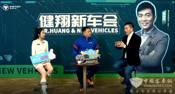 2021年12月23日,著名足球解说员、主持人黄健翔亮相福田汽车举办的“健翔新车会”,并在直播间与全振从足球大巴趣事到欧辉BJ6122城间客车的各项升级性能进行深入探讨,在了解全方位升级的BJ6122各项性能后,黄健翔在直播间为欧辉客车领先行业技术连连点赞。