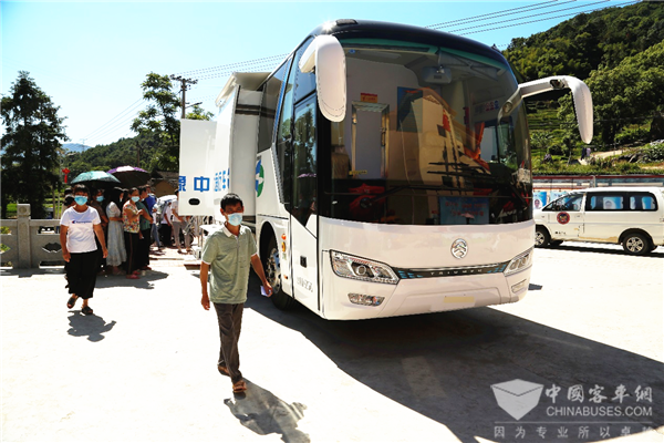 为村民提供服务的金旅CT健康体检车