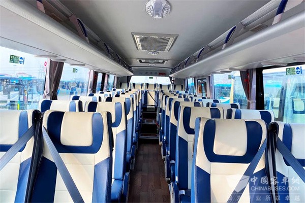内饰上,欧辉BJ6906拥有多种配色,搭载的豪华行李架,舒适的驾驶舱,宽大而平整的车内空间以及入口通道,采用小圆角处理的乘客座椅,新增加的腰部支撑和配置的USB接口,为乘客带来不同以往的舒适体验。同时,驾驶员也可享受到智能彩色大屏仪表、智能温控空调和自适应按摩座椅的呵护,让驾驶员能够在最适宜的条件下舒畅驾驶。