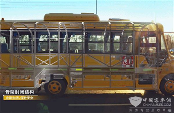 一直以来,宇通校车都是用硬核实力为孩子们的安全保驾护航,整车车身采用骨架式金刚封闭环结构,前后保险杠为5mm厚钢板,在车辆发生事故时更大限度保证车体变形量小;车辆地板距离地面的高度大于0.7米,被动撞击时不会侵入车内空间,坚固的外防护圈可以有效保护孩子们的安全。