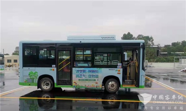 此外,揭西县汽车运输总公司也收到了一些乘客反馈。林桂和表示,乘客也很高兴,一方面,开通新能源公交车之后,出行更方便,也没有尾气味了;另一方面,这45辆车上的图案都是我们找海格客车订制的,青山绿水,乘客看着也觉得清爽、舒心。