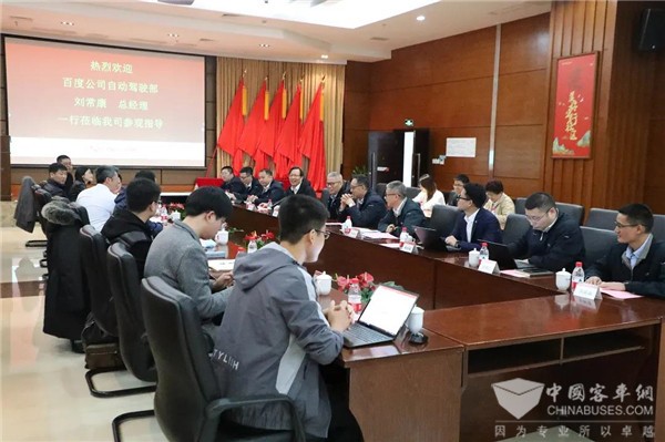 2022年1月5日,百度公司自动驾驶部刘常康总经理一行到访金龙客车。双方就未来深度合作举行座谈会。座谈会上,金龙客车刘志军总经理对刘常康总经理一行的到来表示热烈欢迎。双方共同分析了自动驾驶领域的发展现状,探讨下一步的合作计划,共绘自动驾驶的发展蓝图。
