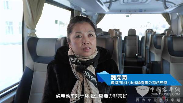 而作为漠河龙头客运企业之一的比让山客运也同样对车辆运营情况感到满意。比让山客运总经理魏宪菊表示:“这批纯电动客车的环境适应能力非常好,故障率低于传统柴油车,车辆出勤率更高。”