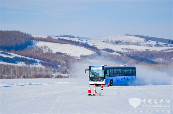 为检验宇通纯电动客车在极寒条件下的性能表现,2022年1月23日一场宇通纯电动客车冰雪挑战在牙克石冰峰汽车营地激情开赛。