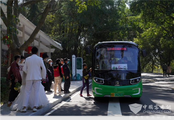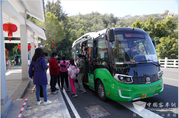 2022年1月底,春节临近,厦门市园林植物园除了在春节假期免费开放外,又传来一条喜讯!6辆金旅星辰新能源观光车投入使用,作为园区内的交通接驳车,连接起植物园的五大核心景点,为游客们带来了环保、舒适、便捷的游园体验,更因为其灵动萌宠的绿色外观被游客们亲切地称作“小绿”。