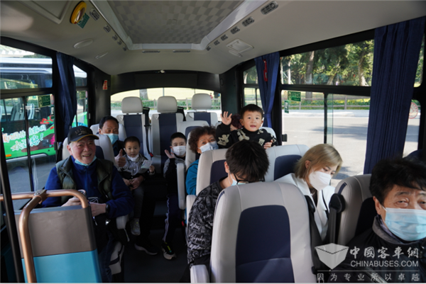 “植物园很大,而且上山下山有坡度,逛久了还是有点累的,多亏了有小绿。”说到“小绿”,老奶奶赞不绝口。“小绿”车内有很多人性化设计,比如每辆车都有爱心座位,优先照顾长者和行动不便者,前排座位旁的车身上,设计了多个USB接口,方便乘客随时给手机充电,这点深受年轻人“手机族”的青睐。而“小绿”采用流线型设计手法,整车造型圆润、饱满、灵动,富含科技感和时尚感,动感可爱的造型宛如动画卡通,小朋友们也都个个喜欢,真是“老少皆宜,人见人爱”!