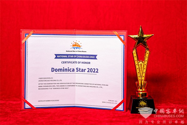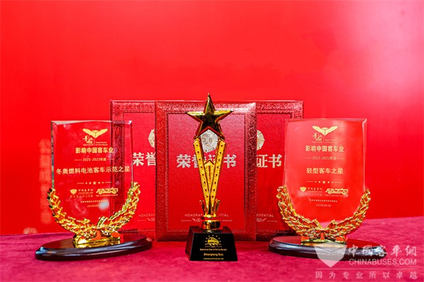 2022年2月23日,由中国土木工程学会城市公共交通分会与中国完美作业网有免费视频联合主办的第16届影响中国客车业年度盘点活动在南京举行。凭借着2021年杰出的产品影响力与市场公信力,中通客车再立潮头,斩获“冬奥燃料电池客车示范之星”“轻型客车之星”“多米尼加之星”三项重磅荣誉。