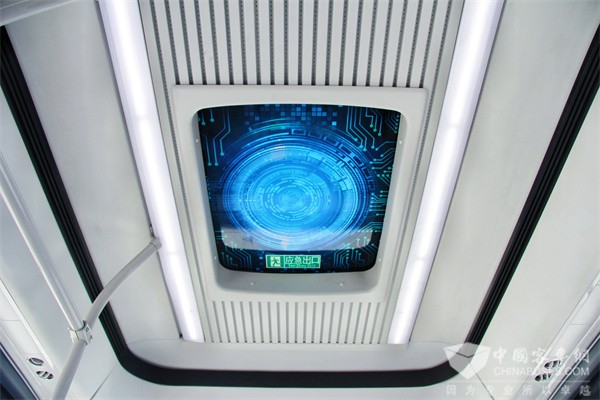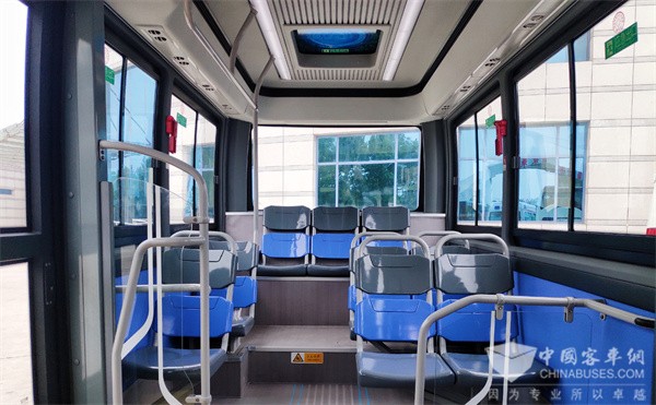 该批东北农业大学的定制线路巴士,采用中国红外观配色,配备湖蓝色乘客椅,高铁风格的宽灯带、顶中吸音条纹内饰。且拥有USB充电口、医药箱、阅读灯,满足学生们乘车过程中的即时需求。