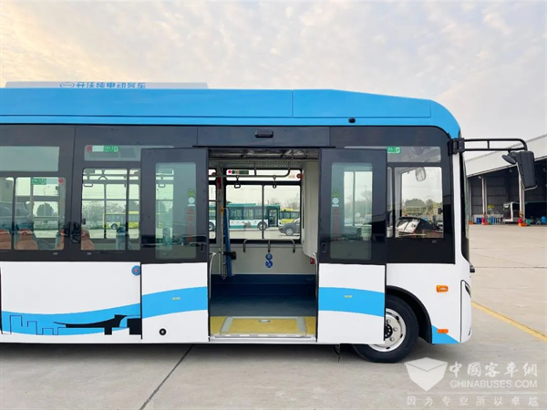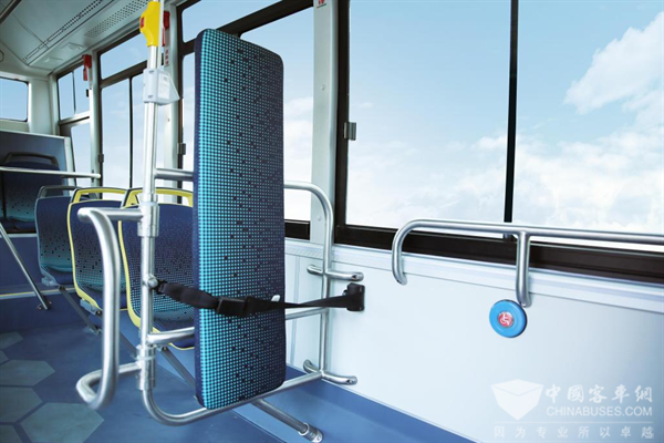 整车布局采用短前悬、长轴距、低入口的设计,动力电池全部顶置,采用高顶方案将电池、空调遮挡,使得车辆空间更加协调,并配置无障碍轮椅区、地铁扶手等,竭力打造司乘空间最大化、确保舒适运营。