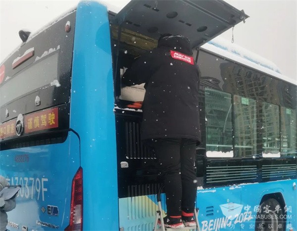 赛事期间,欧辉的服务保障人员披星戴月,无惧严寒风雪,每个人都有着丰富的工作经验和饱满的工作热情,在收车后和发车前,都能对车辆进行极其细致的检验检查工作,确保了车辆安全、准时到达,圆满的完成了车辆服务保障任务。