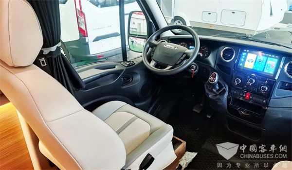 这款车基于依维柯欧胜底盘打造而成,整车长5995mm、宽2040mm、高2755mm。最大总质量4490Kg,额定载客4人。车身外部这款车窗使用外推窗,能使整车内部视野明亮,可以让车主更清楚地观察窗外的美丽景致。