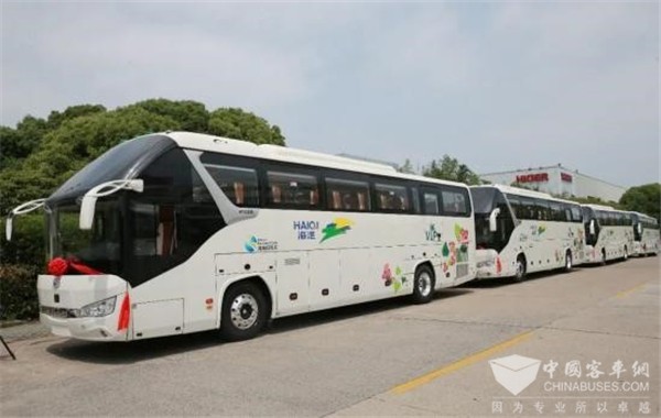 同样响应博鳌亚洲论坛绿色低碳主题,海汽集团携手海格客车以纯电动和LNG清洁能源打造绿色服务阵容,提供低碳高品质交通保障。海汽集团相关领导表示,“近年来海汽集团积极践行双碳目标,创新探索新的清洁运输模式,把更换节能环保、降本增效的绿色清洁能源车辆,作为公司业务发展的主攻方向,并批量引入海格纯电动和清洁能源。这些车辆也在这次论坛中承担重任,包括8米纯电动和12米LNG清洁能源豪华大巴等车型,整体车辆高端舒适、绿色环保,成为了此次论坛一道靓丽的风景线。”