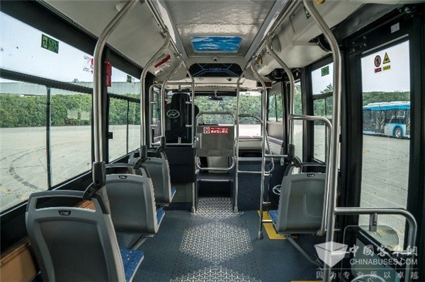 以海格新一代蔚蓝Azure智能网联公交为例,车辆全系一级踏步,并配有ECAS自动升降系统,无障碍、残疾人服务设施和爱心座椅,以及便于上下车的塞拉门,中门红外感应防夹,无线下车门铃,真正将人性化关怀深入每一处细节。不仅如此,创新式的“低地板、大通道、全平地板”设计,更是让车辆乘坐体验直追地铁等公共交通工具,实现高舒适度,通道宽达85厘米,轮椅、婴儿车都可无障碍通过,极大满足了“无障碍化”、“适老化”的标准,提升了轮椅、拐杖等助行器的通过性和上下公交车的便捷性和安全性,提高老人出行的舒适性。