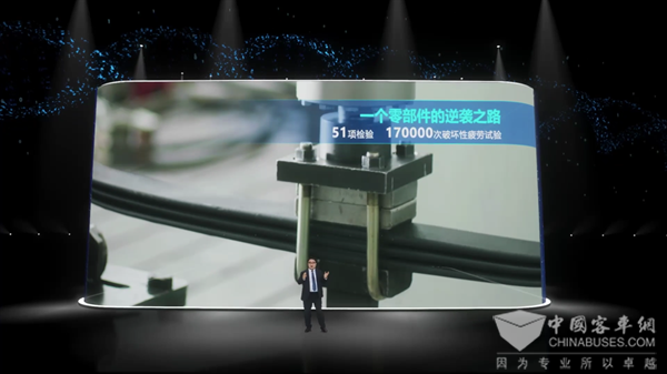 用户对一辆客车的评判标准,最看重的是经久耐用,宇通便从源头做起,“严选品材”。不仅制定严格的准入系统,100%选用业内头部供应商,而且对零部件进出厂执行全尺寸、全功能、全性能的两次100%全检。检验严苛到什么程度呢?据介绍,一辆宇通10米纯电动公交车的零部件高达8132种,以最常见的钢板弹簧为例,其进厂检验项目就有51项之多,小到标识清晰度,大到17万次破坏性疲劳试验,满载运营16000公里以上无损伤,只有全面满足才能符合装车条件,如有一项不满足,则重新来过。
