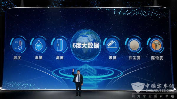 目前,宇通的路谱数据在广度和深度方面已经做到了行业领先。数据的广度上,覆盖全国32个省级行政区,实测路谱超30万公里,可实现在厂区内30天完成100万公里道路模拟实验。数据的深度方面,按照5年平均值,将自然环境和城市路况信息分6个维度,包含温度、湿度、高度、坡度、沙尘度及腐蚀度,从﹣40℃的漠河到50℃的吐鲁番;从相对湿度只有28%的青海到湿度90%以上的海南;从刚刚高于海平面的三沙岛到海拔5200米的珠峰大本营;从最大坡度5°以下的平原城市到坡度15°以上的山城重庆;从无沙尘的三亚到沙尘排名第一的包头;从腐蚀度低的兰州到腐蚀度高的广州,实现环境数据全覆盖。在“超基因价值链”体系下,宇通依托这些数据,以“模块化”的形式,可为用户匹配更合适的场景,组合出更适合的客车,做到“比用户更懂用户”。