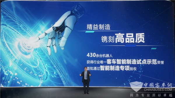 除了“超前研发”,在发布会上,宇通“超基因价值链”的另外四大核心模块也一一呈现,分别为“严选品材、超级制造、全严品控、一站直服”。