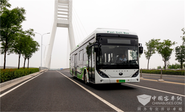 图为宇通研发的氢燃料公交车