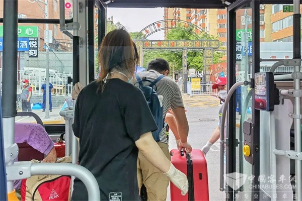 结束集中观察后,朝阳区南新园社区的居民乘坐欧辉客车返回小区。舒适的客车和暖心的服务态度让即将回家的居民热泪盈眶。