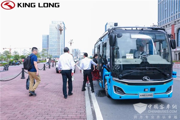 此次试乘体验环节中,现场嘉宾们乘坐阿波龙Ⅱ、金龙逍遥、金龙自动驾驶公交车Robobus行驶在集美新城自动驾驶开放道路,感受多场景车路协同应用。