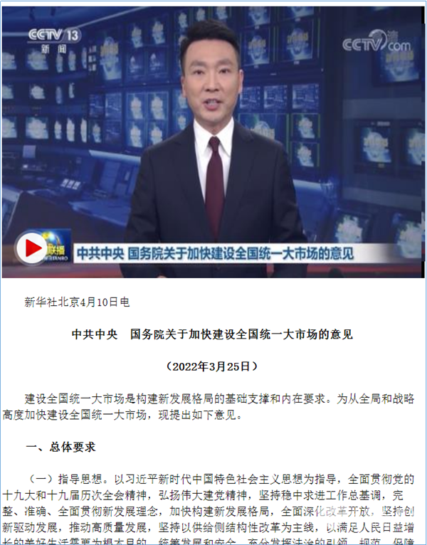 特别是自今年4月《意见》从全局和战略高度对加快建设全国统一大市场作出部署以来,全国日渐形成抓落实、重实效的良好氛围。5月,市场监管总局在9省(市)组织开展公平竞争审查制度创新试点工作,其中,在江苏、重庆开展公平竞争审查信息化建设试点,在天津、吉林、上海、浙江、山东开展公平竞争审查会审试点,在安徽、广东开展公平竞争审查举报处理试点,在浙江、广东试点编制公平竞争指数,更高水平、更深层次、更大力度促进全国统一大市场和高标准市场体系建设。