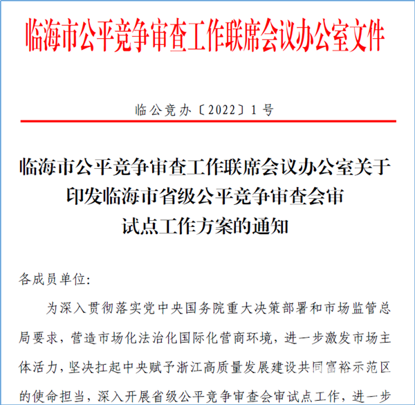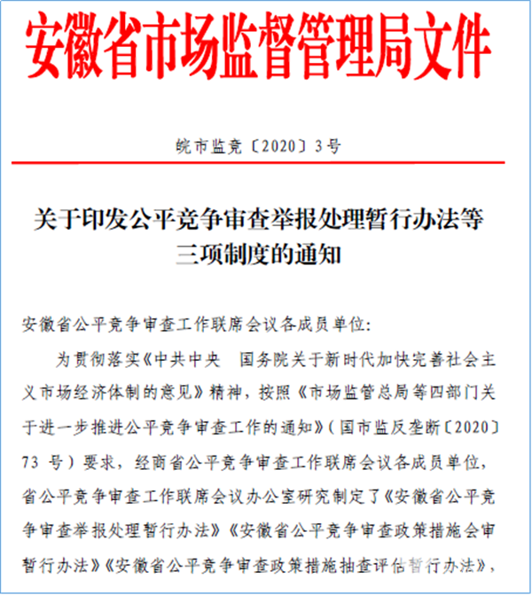 在公平竞争审查制度创新试点的9个省(市)中,安徽已于2020年印发《安徽省公平竞争审查举报处理暂行办法》等三项制度,预计近期还会出台更新的落实政策;浙江在今年5月27日印发了《临海市省级公平竞争审查会审试点工作方案》。