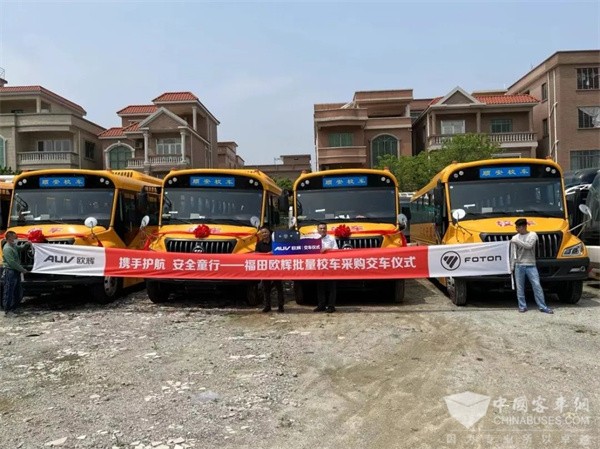 3月,福田欧辉再度牵手东莞市囯盛校车服务集团有限公司,将153台欧辉BJ6116& BJ6706新一代健康校车交付囯盛集团,共同护航孩子们的上学之路。