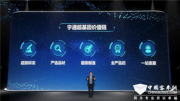 2022年5月,第六个中国品牌日,客车行业的代表企业宇通客车举行线上发布会,发布了基于客车全生命周期价值升级的新事物——“超基因价值链”。这是宇通秉承“电动化、智能网联化、高端化、国际化”的发展战略,采用“直销、直融、直服”的发展模式,以客户为中心打造的价值体系。可以理解为“一辆好客车的标准和使命”,从洞察需求到研发设计,从车辆选材到生产制造,从质量验证到售后服务,一路下来,每一个环节都精益求精,追求极致。