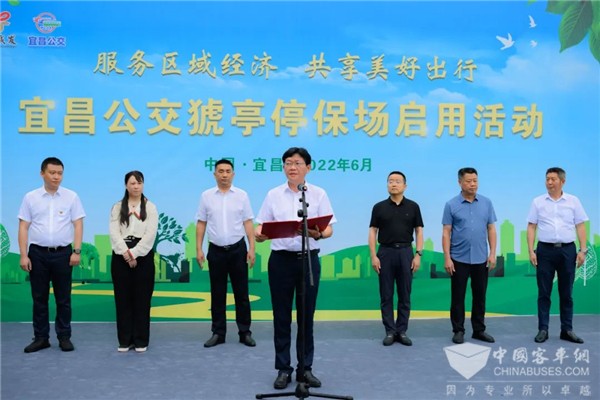 本次交付仪式主题为“服务区域经济,共享美好出行”,猇亭区政府党组成员严杰,中车电动副总经理张巍,猇亭区交通运输局局长陈曲,宜昌公交集团党委副书记、工会主席彭芳及各部门相关领导等200余人参加交车仪式,共同见证这一重要时刻。