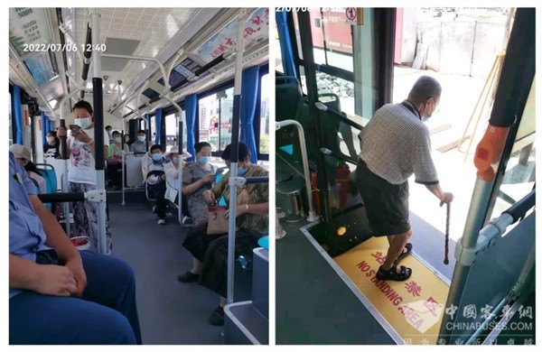 这批车对驾驶员也非常友好,车辆具备一键灯光巡检功能和辅助转向功能,车辆外围灯光全部点亮,40秒后自动熄灭,提升灯具检修方便性,保证车辆运行安全,另外,夜晚运行时,转向时对应侧雾灯开启、扩大照明区域,提升行车安全性;还有有伴我回家功能,晚间公交车停运后,前门开启电源关闭,驾驶员灯以及前门灯点亮,10秒后自动熄灭,方便驾驶员下车。车辆维护也非常便捷,前围采用开放式前围,极大地方便检修、雨刮器、除霜器、灯具等。