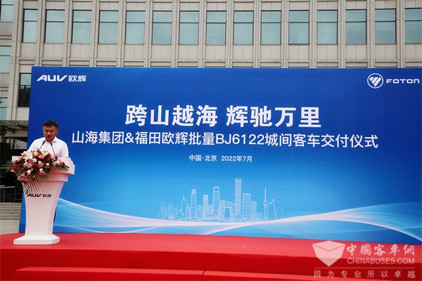2022年7月6日,批量福田欧辉BJ6122精品客车成功交付山海集团,以其优质的产品及服务,助力山海集团京津冀大区进入更专业、更全面的服务时代。山海集团京津冀大区总经理刘信、山海集团北京分公司副总经理于彬、福田欧辉新能源客车营销副总裁王晓亮、福田欧辉新能源客车华北分公司销售副总经理严峰等领导共同出席了本次交车活动,交车仪式由福田欧辉新能源客车营销公司城间客车副总经理杨希玉主持。