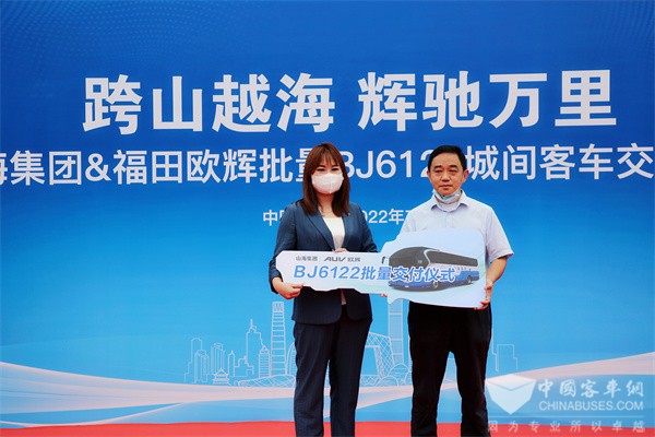 此次交付山海集团的福田欧辉BJ6122城间客车,是福田欧辉针对旅游市场出行升级,潜心打造的高端旅游客车,凭借动力强劲、造型优美、高效节油、智能舒适等特点,一经上市便斩获“2021公路客车创新产品”、“长途客运先锋”等奖项。