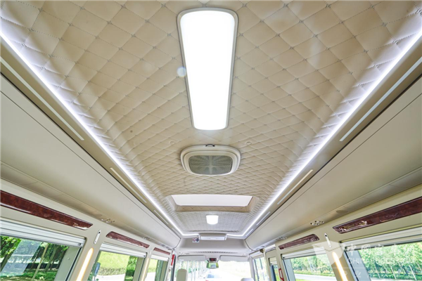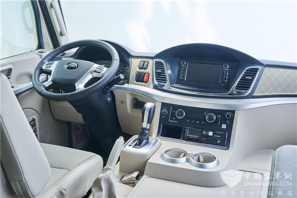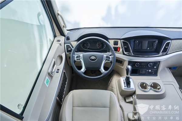 当车辆中部电动外摆自吸加宽门缓缓开启,伸出的电动踏步离地高度190mm恰到好处,让上下车都优雅便捷;其次,车内空间设计十分宽敞,内部高度达到1.91m,内部宽度在1.89m,让乘客不仅能感受大空间的惬意,也能享受“不低头”的自信与从容。