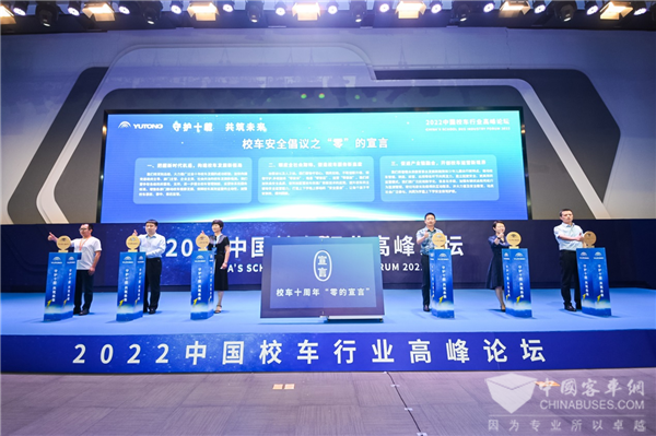 2022年7月8日,以“守护十载 共筑未来”为主题的2022中国校车行业高峰论坛在郑州举办,今年恰逢《校车安全管理条例》颁布实施十周年,本届论坛的举办,既对过去十年校车发展进行总结,又对校车“下一个十年”进行展望。立足校车安全,从管理、制造、运营、应用等多个维度探讨校车发展方向和思路,并面向未来发出“零”的宣言。