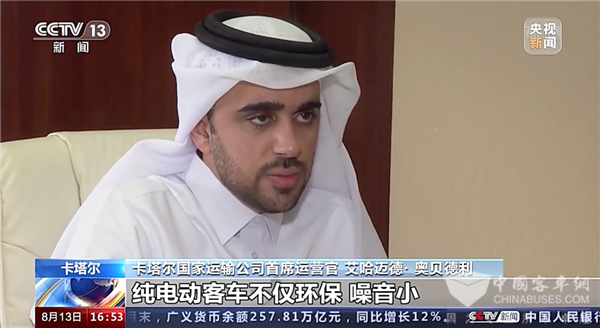 这份用心,让宇通客车赢得了客户的青睐和信任。“我们的目标是将我们的全部车队,包括客车和轻型车辆全部替换成节能环保型车辆。在过去几个月,我们已经把一部分公交大巴替换成了纯电动客车,相比燃油大巴,纯电动客车不仅环保,噪音也小得多,而且保养维修方便,长期的经济效益也非常划算。”卡塔尔国家运输公司首席运营官艾哈迈德· 奥贝德利(Ahmed Al Obaidly)在接受CCTV采访时说。