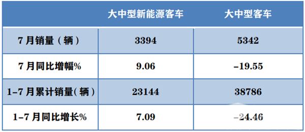 今年1-7月,行业6米以上新能源客车累计销售23144辆,同比增长7.09%,跑赢今年1-7月大中型客车市场大盘(客车统计信息网数据显示今年1-7月大中型客车同比下降24.46%)。