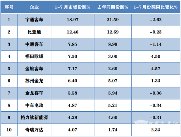 金旅第二 欧辉份额上升 TA暴增520% 7月大中型新能源客车销量同比增长7.09%