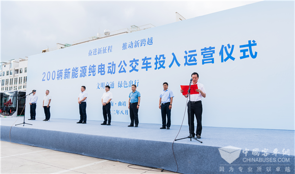 2022年8月13日,云南省曲靖市200辆新能源纯电动公交车投入运营仪式隆重举行。曲靖市人民政府副市长陈志出席仪式并表示,这是曲靖城市公交高质量发展的又一丰硕成果,标志着曲靖城市公交事业迈上了新台阶。