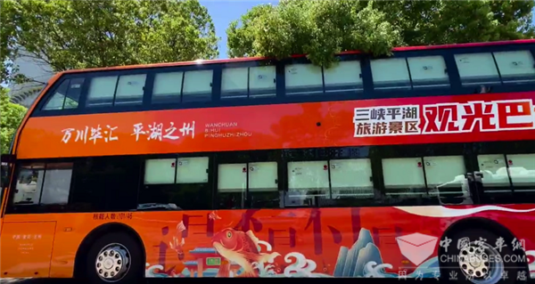 橘红色车身外观设计,阳光四溢暖意满满,穿行于城市之间特别醒目,车身两侧“万川毕汇 平湖之州”城市风貌融入其中,风采尽在,城市特色凸显。车辆长度为12.3米长,车高4.1米,车身可根据路况自动升降,实现无障碍上车关怀。一层内高1.88米,二层内高1.72米,内部高度方便站立和行走,而双层“大肚量”空间,也大幅提升客运能力。上圆弧下方正的车前挡风玻璃设计全面扩大正前方观景视野,无论从驾驶员行驶考虑还是乘客欣赏美景需要都给予了充分满足。为满足城市观光所需,车辆二层还打造时尚全景天窗,实现360度观景,让乘客乘坐车内,可以尽赏城市好风景,一切美好心境和意境自然流露。