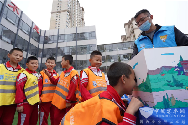 在校方的支持以及志愿者老师的带领下,学生分组完成了认识车辆盲区、认识大货车内轮差、探索神奇的盒子等多个道路交通安全游戏体验。通过丰富有趣的亲身体验,孩子们纷纷感叹活动的有趣性,表达自己对宇通&壹基金儿童交通安全公益行活动的喜爱,认为自己收获到了很多交通安全知识,并要把这些知识传递给身边的同学。