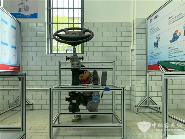 贴近实际工作,选手在规定的时间按技术要求完成底盘转向系统安装与调试、起动机连线与绘制起动电路、驱动电机系统装调与检测、动力电池系统装调与检测等项目,眼到、手到、心到,缺一不可,实现每一个汽车部件精准装配。