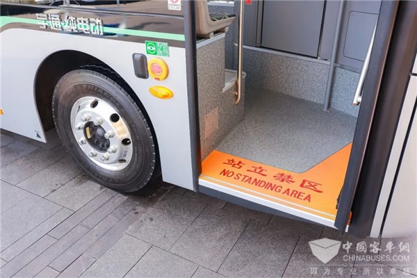 在车门的设计上,宇光E8 MAX保留了前/中双开门的无人售票设置,并且采用宇通最新研发的2.0版防夹乘客门,拥有新结构气囊防夹+电子防夹双重保障。车辆关门时可智能感知障碍物,自动开启车门,防止乘客夹伤、碰伤。