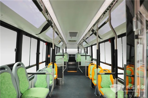 内饰秉承“高铁”设计定位,极具视觉通透性、功能形式感。顶板采用整体式无拼接设计,滚压成型风道门板,车内更加平整美观;车内所有可视螺丝均采用不锈钢材料、圆头密封螺母,凡乘客可触及的部件、构件均无尖角;隐藏式出风口,美观且可避开乘客头部,风速均匀,乘坐更加舒适。