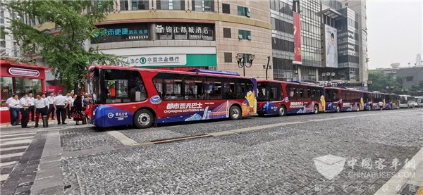 美丽山城不仅有麻辣火锅和重庆小面,旅游资源更是得天独厚。近年来,重庆公交利用移动互联实现外部用户需求触达,做强“都市观光·漫游重庆”等服务品牌,游客可乘坐观光巴士打卡“两江四岸”,个性化的旅游出行服务正受到越来越多市民的青睐。 五一前夕,重庆首条两江四岸观光巴士环线T888线正式开通,这条线路串联起解放碑、江北嘴、弹子石、南滨路、白象街、来福士和洪崖洞等众多景区,让游客一次性游览重庆的两江四岸。16辆获得中国知识产权局第二十届中国专利奖的明星车型——苏州金龙风景旅游巴士负责承运,其设计采用英伦复古车头造型,高端定制的内饰、视野开阔的观景窗等多项配置皆为高端定制旅游而生。