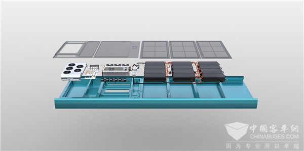 即整车电池一体化技术,是基于模块化思维将动力电池模组、空调、热管理机组等整车部件与整车深度集成的技术。该技术方案取消了传统的电池PACK与空调等零部件的外壳与部分零部件,由整车来实现动力电池、空调等零部件的密封与安全防护,是电动客车系统集成技术的一次跨越式创新。