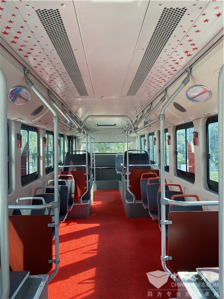 由于电池顶置与顶盖集成后,车辆地板以下零部件大量减少,车内地板变低了,变平了,乘客直接的感受就是,车厢空间更大了,10米级的车有12米车的空间感受,同时全平地板和一级登乘让乘客无论是上下车还是在车厢内移动都会更安全更顺畅,而且乘车过程不会过于拥挤。MTV技术能够使公交产品更好的满足国家针对人口老龄化趋势大力倡导的公共设施适老化的要求。