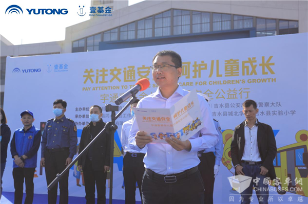 现代化的建设深入也为学生的出行生活带来新面貌,安全合规的校车在全国范围的应用比例也在不断提升。作为我国重要的校车供应商,宇通从最根本的需求出发,力求把校车打造成最安全的堡垒。宇通客车股份有限公司江西分公司区域经理王虎在活动现场郑重承诺:“孩子们是吉安的未来,更是祖国的未来,感谢大家能够信任宇通把孩子的上学路交给我们守护,未来宇通一定会带来更安全的校车、更先进的技术,共同呵护儿童平安成长,共筑交通安全。”