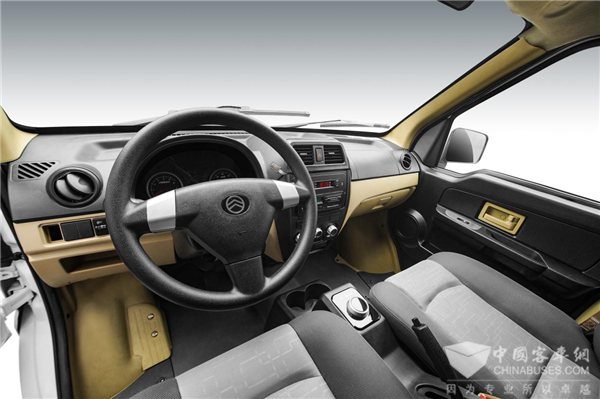 作为一辆货车,货厢非常关键。GLE570的车厢采用常见的封闭式设计,同时驾驶室与货厢之间也通过金属隔板完全隔开,但是中间却配有一个超大窗口,司机可以随时观察货箱内获的货物状态,且5.5立方米的超大载货空间,对于快递配送、商超的米面油菜品等的配送空间需求绰绰有余。货厢地板平整宽敞,货厢右侧为滑移门,方便侧边装卸货,尾门为上掀开式打开,装货轻松快捷。车身采用全承载加强笼式设计,前后超强防撞钢梁,车门双防撞梁,坚固安全路上行驶更放心。